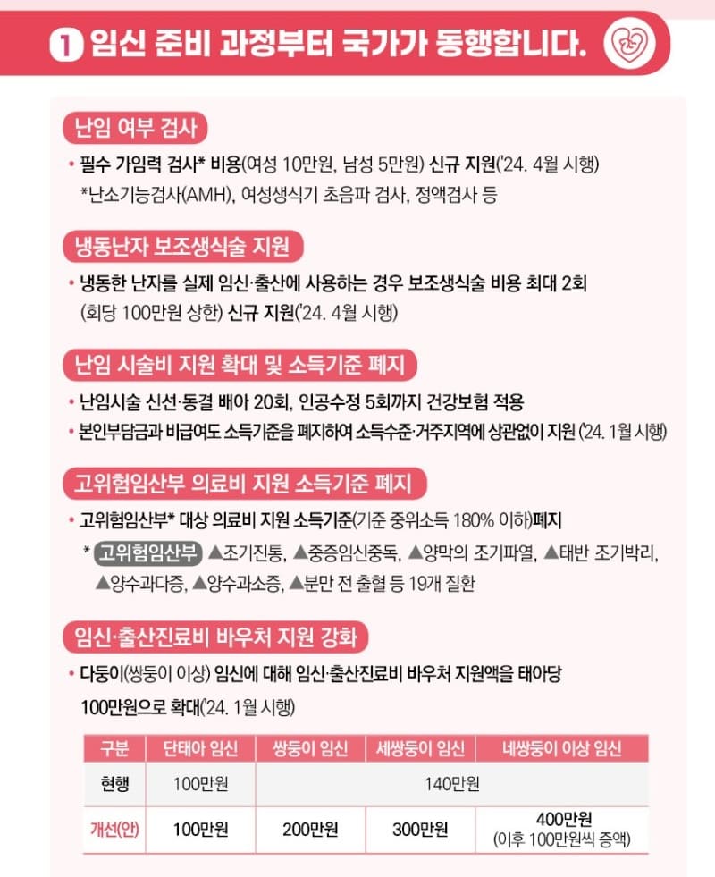 - 보건소 → 냉동난자 보조생식술, 난임 시술비, 기저귀·분유 지원